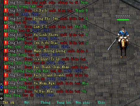 Các đồng đạo phải tự đi tìm địa điểm boss xuất hiện, không có tọa độ boss trên kênh thế giới.